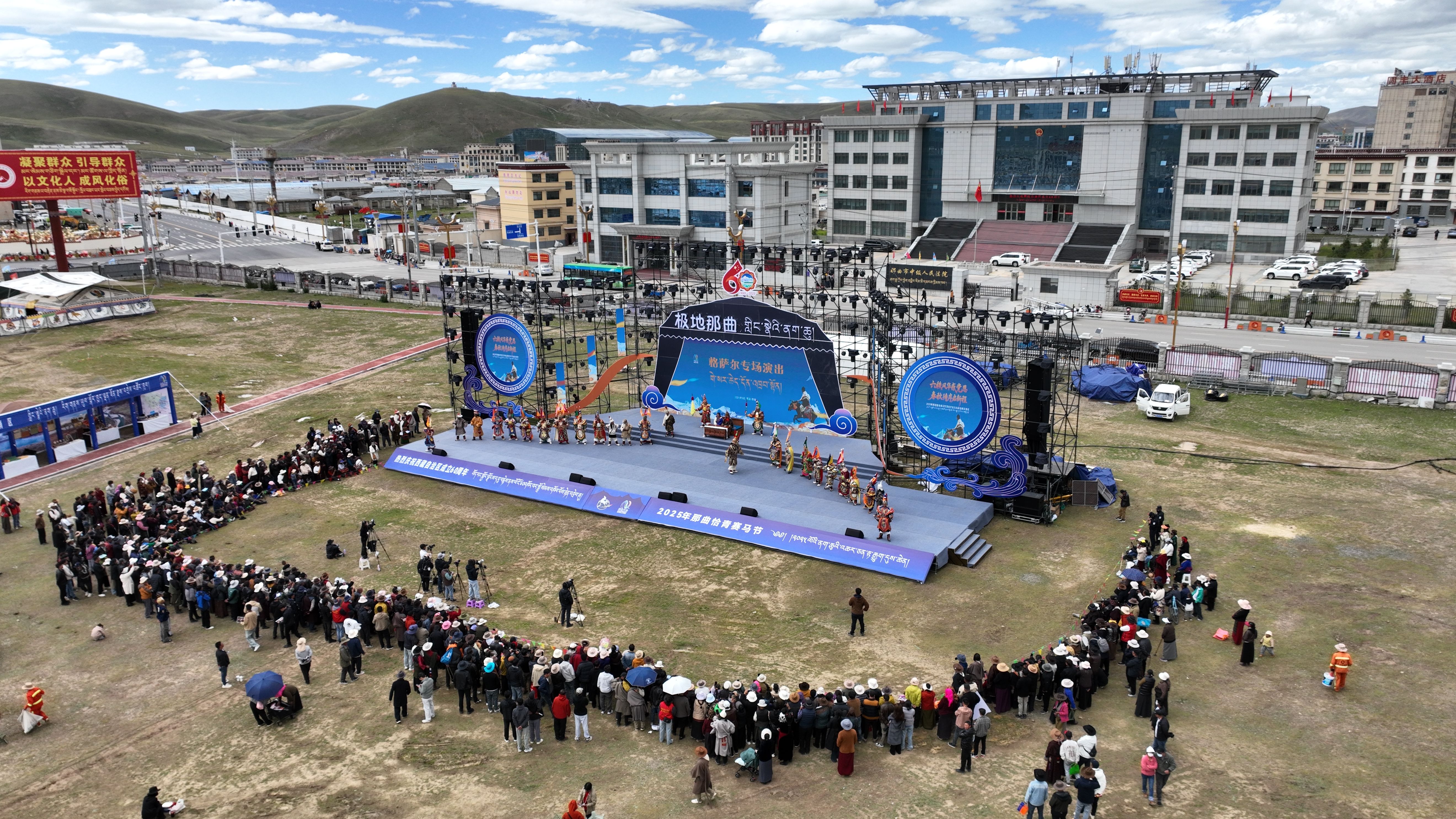 15時(shí)30分,文旅活動(dòng)區(qū)的遮陽棚下早已座無虛席,由色尼區(qū)承辦的格薩爾說唱專場演出準(zhǔn)時(shí)啟幕。7位格薩爾說唱藝人依照節(jié)目單依次登臺(tái)。首先,國家級(jí)格薩爾說唱藝人扎西多杰以其渾厚有力的嗓音和深情的演繹,將格薩爾王的英雄事跡和麾下三十大將的傳奇故事娓娓道來,讓在場的每一個(gè)人都仿佛穿越千年,置身于那段波瀾壯闊的歷史長河之中。